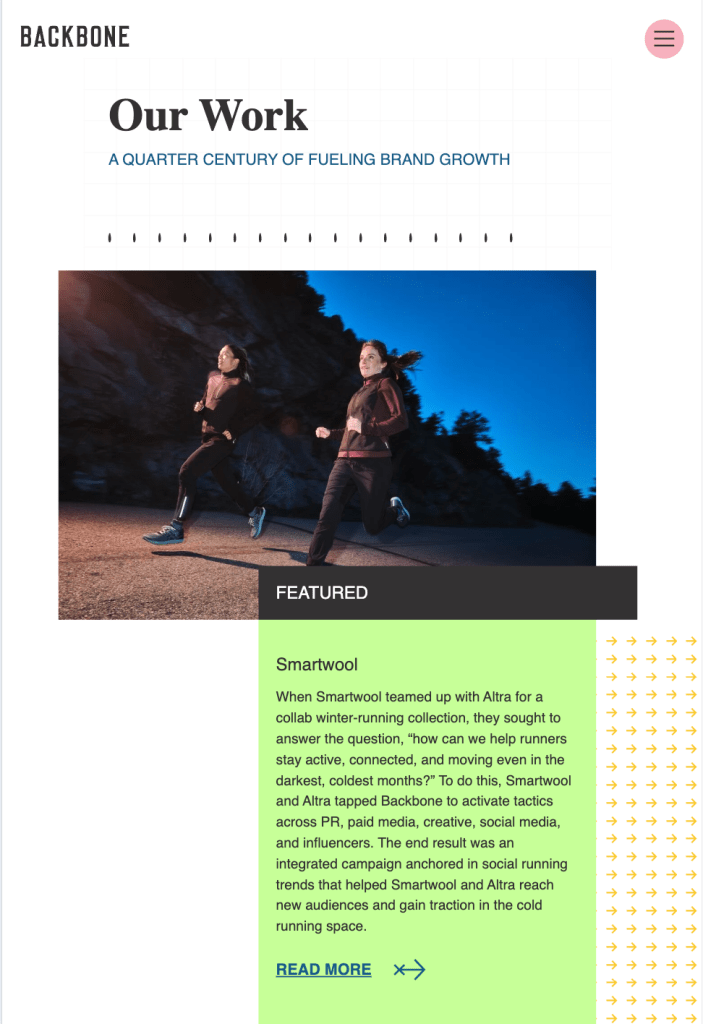 In this community I became an expert in web design, refining Backbone’s website, balancing client budgets to offer the best marketing service spread, and working hands on to cultivate campaign ideas, social media content, and backend SEO management.